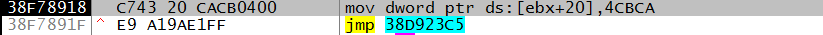 38D703A3 FFE0 jmp eax